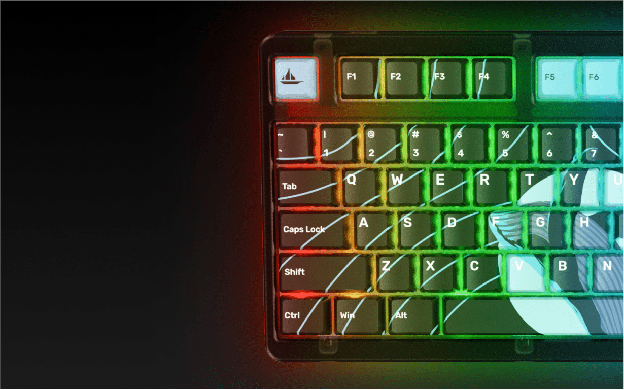 Featuring our favorite ocean friend in all it's glory, with this completely unique die-sub keycap design. Turn on the beautiful per key RGB to light up your desk and game in style.